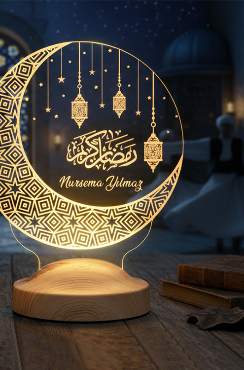 Hilal ve kandil detaylarıyla tasarlanan bu ramazan hediyesi LED lamba, Ramazan ayının huzurunu ve maneviyatını evin en güzel köşesine taşır. Üzerine eklenen isim sayesinde seri bir üründen çıkar, tamamen size özel bir hatıraya dönüşür.