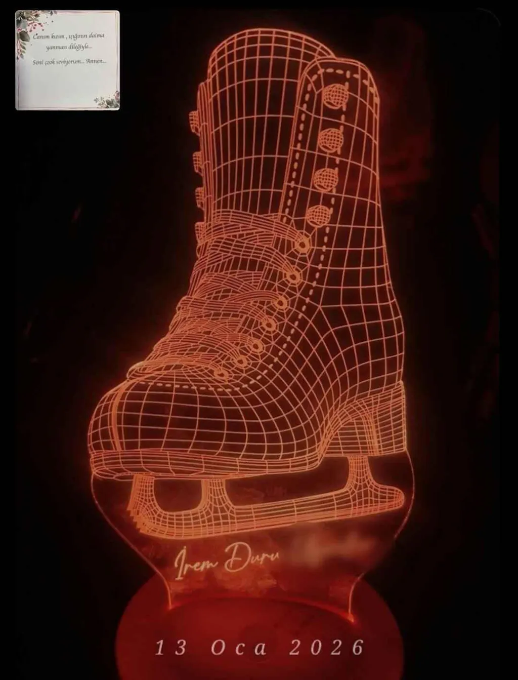 Buz Pateni 3D Led Lamba – Artistik Buz Pateni Sporcusuna Özel Hediye, Buz Pateni Sporcu ve Antrenör Hediyesi Edea, Jackson