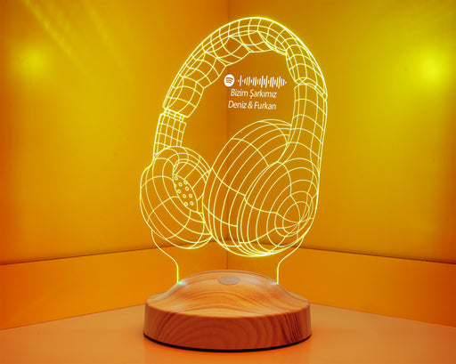 Doğum Günü Hediyesi Spotify Barkod Paylaşımlı Kulaklık Şeklinde Kişiye Özel 3D LED Lamba