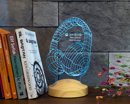 Doğum Günü Hediyesi Spotify Barkod Paylaşımlı Kulaklık Şeklinde Kişiye Özel 3D LED Lamba