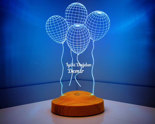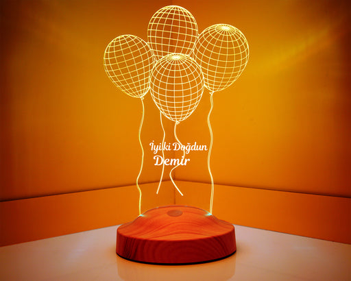 Uçan Balonlu Hediye Kişiye Özel 3D Balonlar Led Lamba, Doğum Günü Hediyesi İyi ki Doğdun