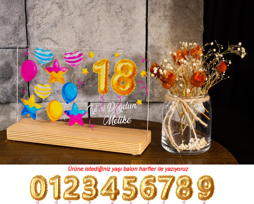 Tüm ayrıntıları görüntüleKişiye Özel Doğum Günü Temalı Üç Boyutlu Balonlar Led Lamba