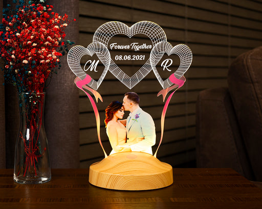 Sevgililere Özel Renkli Baskı Resimli Yıl dönümü hediyesi Gece Lambası, 3D Led Lamba, Eşe Hediye, Sevgiliye Hediye