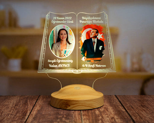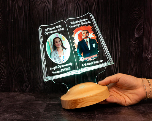 Tüm ayrıntıları görüntüleÖğrenci İsimli Atatürk Temalı Öğretmen Hediyesi – Kişiye Özel 24 Kasım Lambası