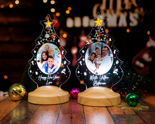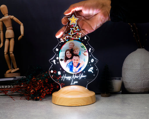 Tüm ayrıntıları görüntüleYeni Yıl Hediyesi Renkli Baskılı Resimli Yılbaşı Çam Ağacı Kişiye Özel Gece Lambası, 3D Led Lamba, Yılbaşı Hediyesi