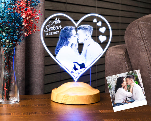 Sevgililere Özel Renkli Baskı Resimli Yıl dönümü hediyesi Gece Lambası, 3D Led Lamba, Eşe Hediye, Sevgiliye Hediye