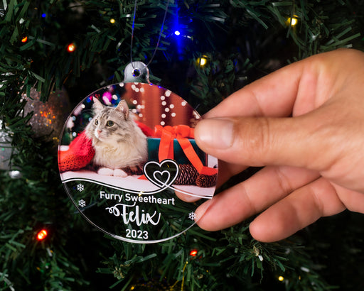 Tüm ayrıntıları görüntüleKedi - Köpek Fotoğraflı Yılbaşı Ağaç Süsü – Kişiye Özel Evcil Hayvan Hediyesi