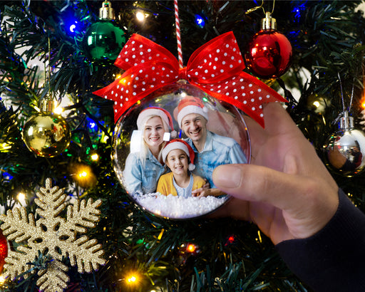 Tüm ayrıntıları görüntüleFotoğraflı Yılbaşı Ağaç Süsü – Kişiye Özel Şeffaf Küre - 1 Adet