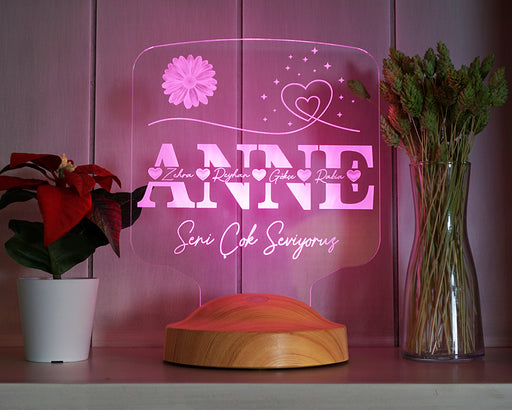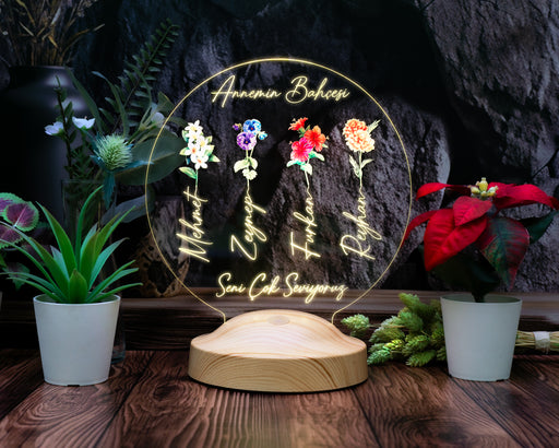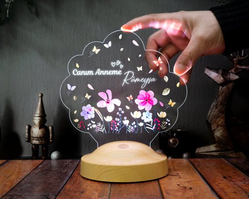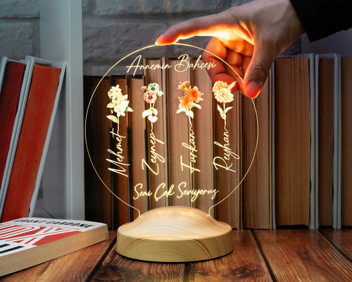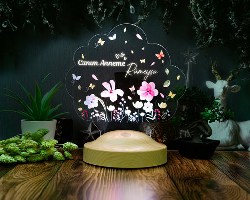 Tüm ayrıntıları görüntüleAnnemin Bahçesi – Kişiye Özel Çiçekli Anneler Günü Hediyesi LED Lamba | Anneye & Kayınvalideye Hediye