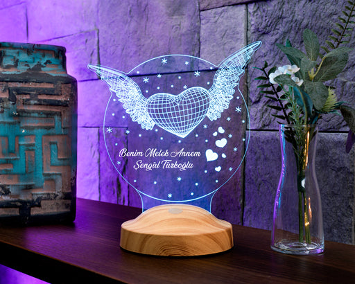Tüm ayrıntıları görüntüleAnneler Günü Hediyesi, Annelere Hediye, Melek Kanatlı Kalp Anneye Hediye Kişiye Özel Led Lamba