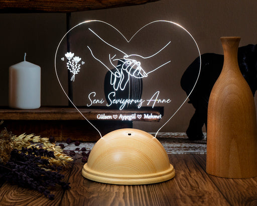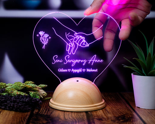 Kalp Şeklinde İsim Yazılı LED Lamba – Anneye Kişiye Özel Anneler Günü Hediyesi