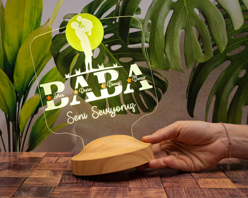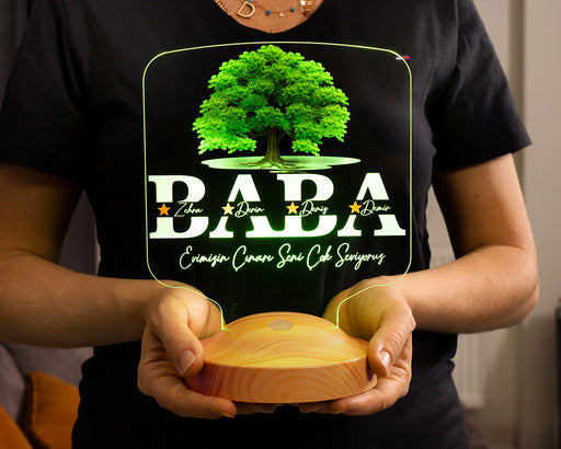 Tüm ayrıntıları görüntüleBabalar Günü Hediyesi, Babaya Hediye, Evimizin Çınarı Hediyesi, Renkli İsim Yazılı Kişiye Özel 3D Led Lamba