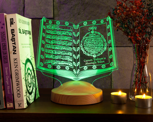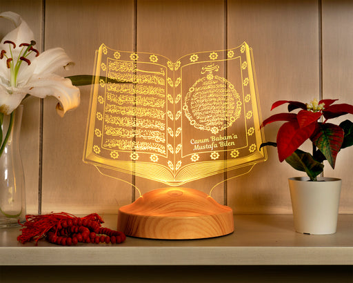 Tüm ayrıntıları görüntüleBabaya Dini Hediye, Babalar Günü Hediyesi Kuran-ı Kerim, Dedeye İslami Doğum Günü Hediyesi, Kişiye Özel Lamba Manevi Hatıra