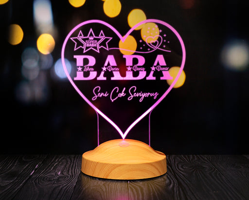 Tüm ayrıntıları görüntüleBabalar Günü Hediyesi, Kişiye Özel Babaya Hediye İsim Yazılı Kalp Şeklinde Led Lamba, Gece Lambası