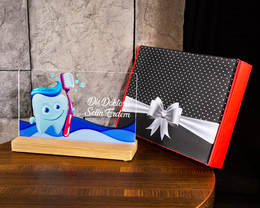 Tüm ayrıntıları görüntüleKişiye Özel Pleksi Şeffaf Çerçeve Diş Doktoru Hediyesi Özel Hediye Paketli