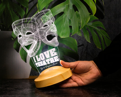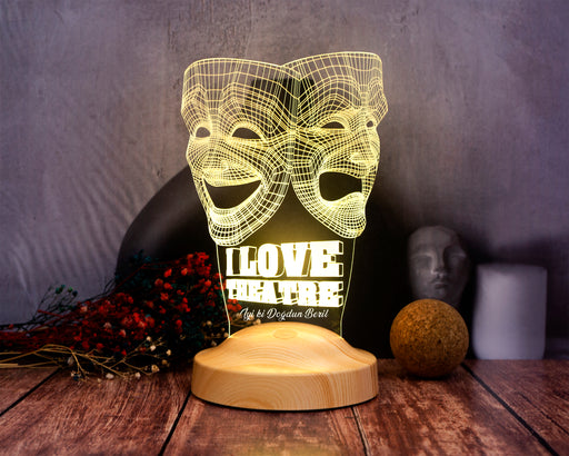 Tüm ayrıntıları görüntüleDünya Tiyatro Günü Hediyesi, Kişiye Özel 3 Boyutlu Tiyatro Maskesi, Sock ve Buskin Sembolü Led Lamba
