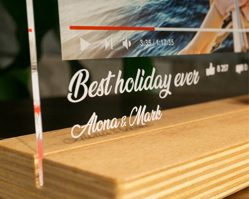 Tüm ayrıntıları görüntüleYoutube Video QR Kodlu Fotoğraf Eklenebilen Kişiye Özel UV baskılı Şeffaf Çerçeve