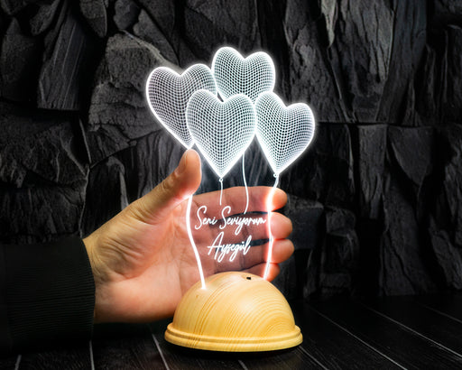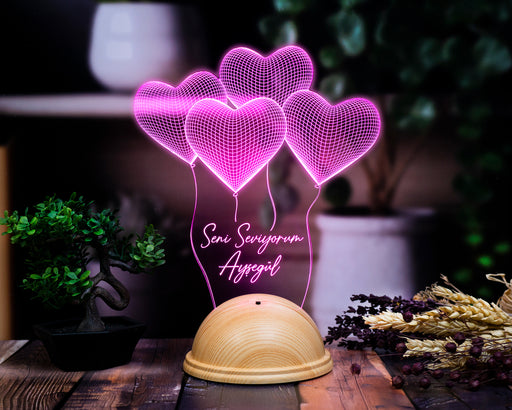Tüm ayrıntıları görüntüleİsimli Doğum Günü Hediyesi, Sevgiliye, Arkadaşa Doğum Günü Hediyesi, Balon Kalpler Kişiye Özel 3D Led Lamba