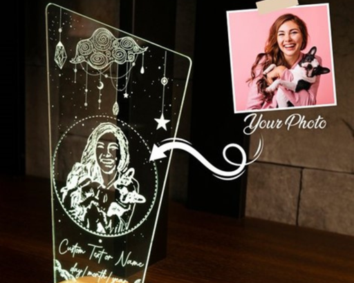 Tüm ayrıntıları görüntüleKarakalem Çizimli Tasarımlı Işıklı Fotoğraf Led Lamba, Kişiye Özel Hediye, Komidin Başucu Lambası, Evcil Hayvan Severlere Fotoğraflı Hediye, 3D Led Lamba