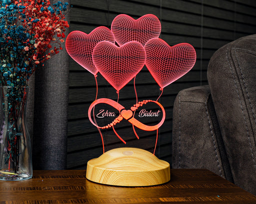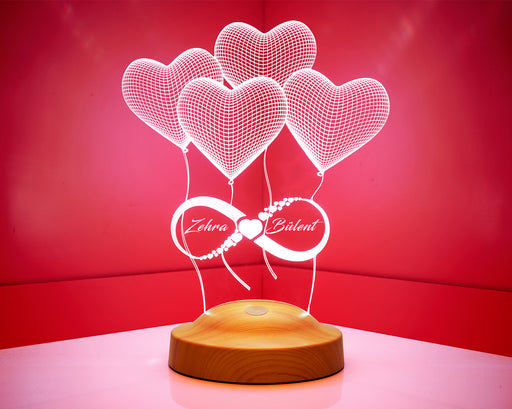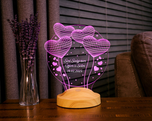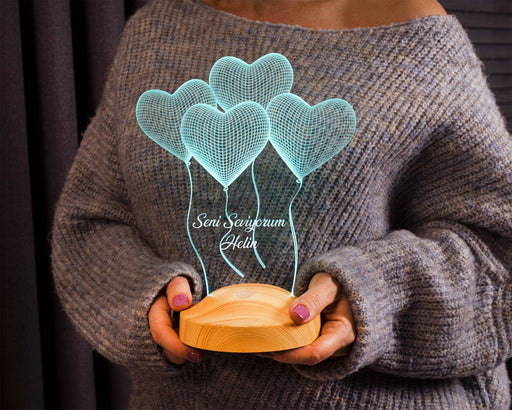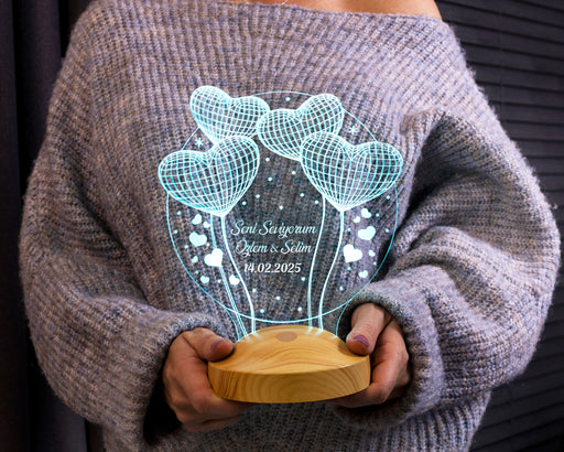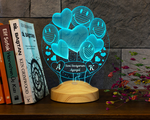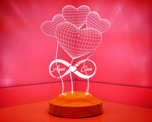 Tüm ayrıntıları görüntüleİsimli Doğum Günü Hediyesi, Sevgiliye, Arkadaşa Doğum Günü Hediyesi, Balon Kalpler Kişiye Özel 3D Led Lamba