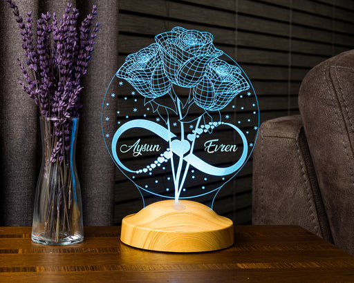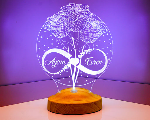 Tüm ayrıntıları görüntüleGüller Ve Sonsuzluk, Eşe Hediye, Sevgiliye Hediye 3 Boyutlu Led Lamba