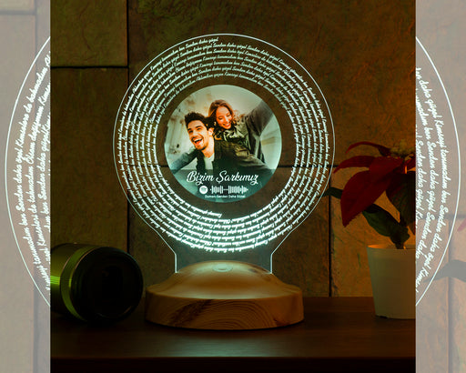 Tüm ayrıntıları görüntüleSpotify Kodlu Kendi Fotoğrafın ve Tüm Şarkı Sözü ile Led Lamba Şarkı Metinli ve İsimli Kişiye Özel Plak Formlu Fotoğraflı Kişiselleştirilmiş Hediye