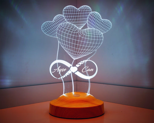 Tüm ayrıntıları görüntüleSevgiliye Hediye, Sonsuz Aşk, Kalpler ve Sonsuzluk Hediyesi, İsimli 3 Boyutlu Led Lamba