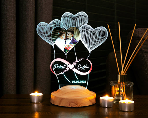 Tüm ayrıntıları görüntüleSevgililere Özel Renkli Baskı Resimli Yıl dönümü hediyesi Gece Lambası, 3D Led Lamba, Eşe Hediye, Sevgiliye Hediye