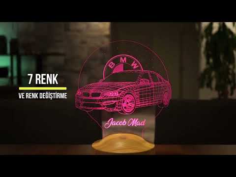 BMW Logolu İsimli Led Lamba, Araba Hayranlarına Hediye, Doğum Günü Hediyesi, Kişiye Özel Hediye 3D Led Lamba